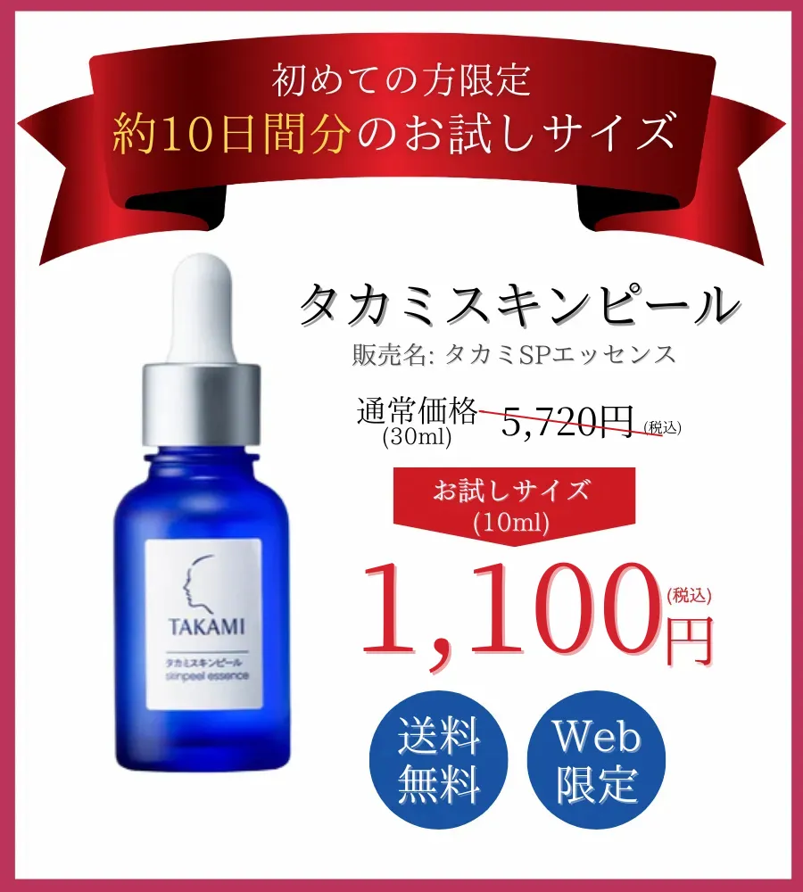 そんなタカミスキンピールは1本30ml(1ヶ月分)で5,720円(税込)です。