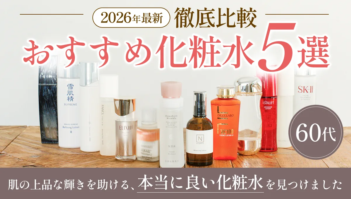さらに、口コミ、コスパが優れているものだけを選びぬき、プロが太鼓判を押す60代におすすめの化粧水TOP5を作成しました!