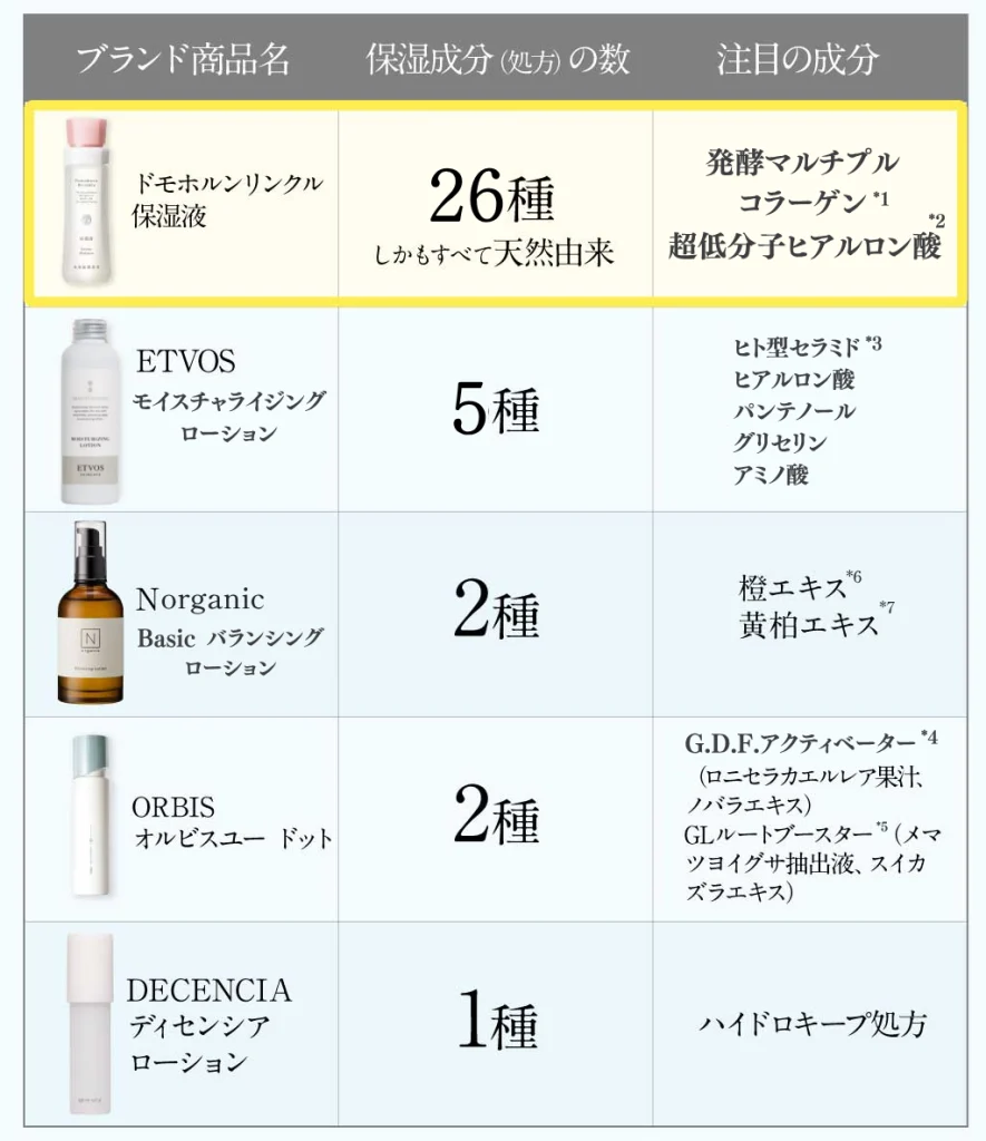 | 保湿成分数 | ![]() 26 | △ 2 | △ 2 | △ 1 | ◯ 5 |