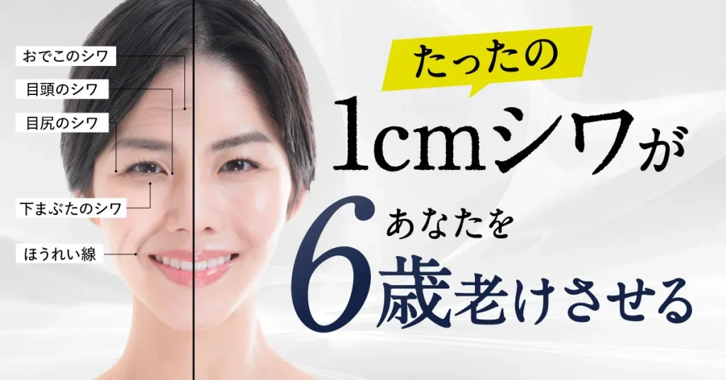 ロート製薬の調査によると顔のシワたった1cmの差が見ため年齢を約6歳も老けさせるという調査が話題に…