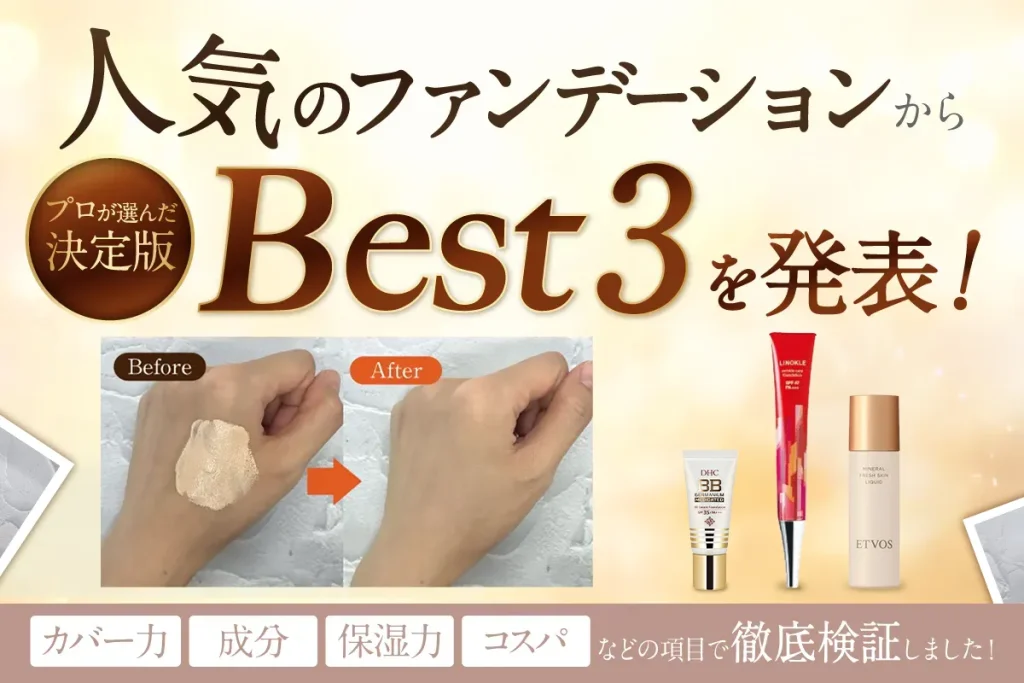 カバー力、保湿力、成分、コスパなどの項目で選ばれたファンデーションBEST3を発表します!!