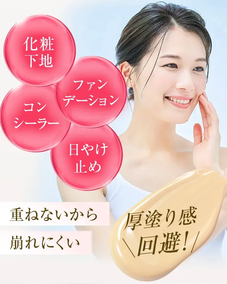 さらにすごいのが、化粧下地・日焼け止め・ファンデ・コンシーラーまで1本で完結するところ!