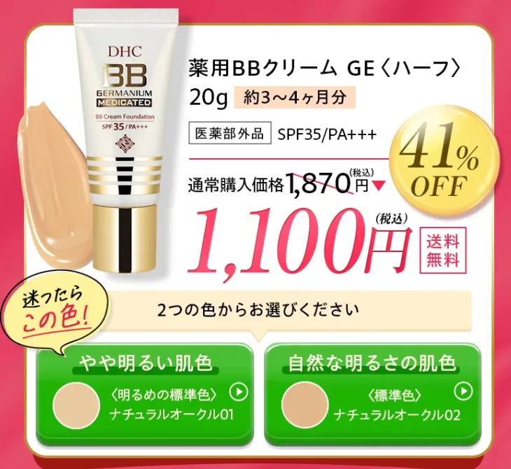 そんな、ひと塗りで若見え美肌を目指せるDHC 薬用BBクリーム GE ハーフの通常価格は1,870円。