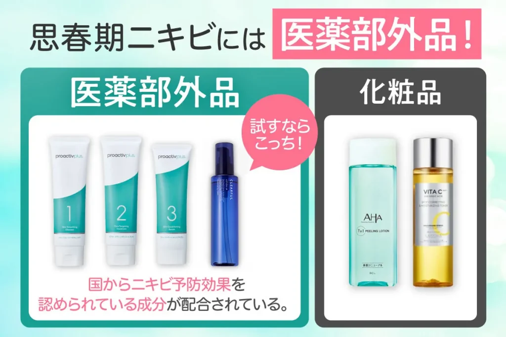 ニキビをケアするなら、厚生労働省がニキビへの効果を認めた成分入りの「医薬部外品」の商品を選ぶのがおすすめ!