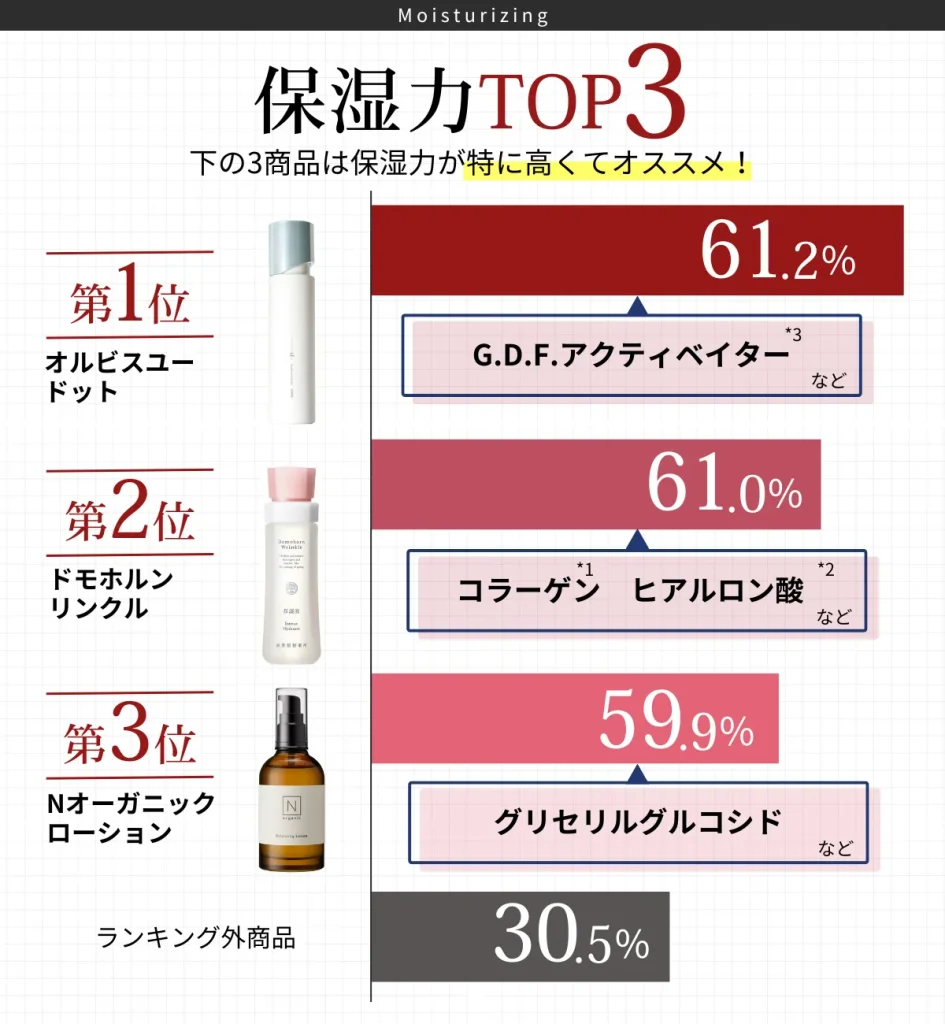 ①40代の肌に浸透※する保湿力が高い化粧水を選ぶ