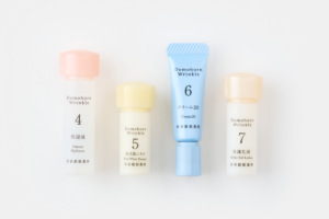セット内容は、シワ改善クリームの「クリーム20」に加え、保湿液、美活肌エキス、保護乳液。肌本来の力を活かす、主力アイテムの基本4点がすべて試せます。