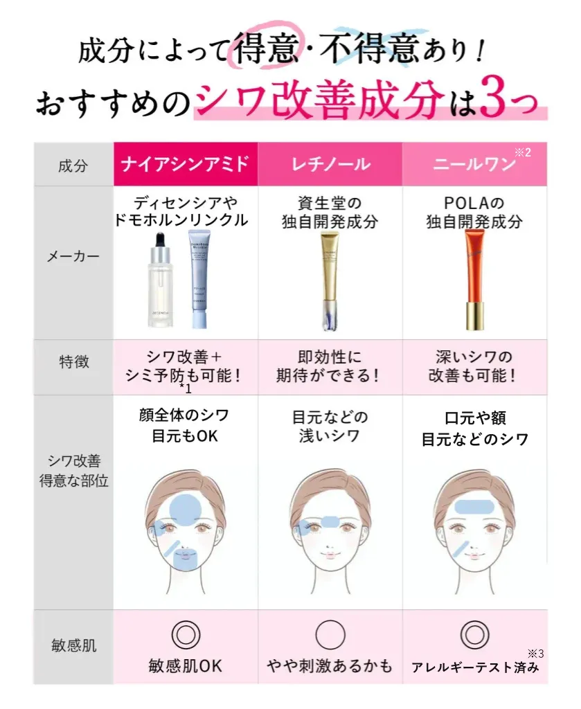 気をつけて!有効成分によってシワへの得意不得意あり!