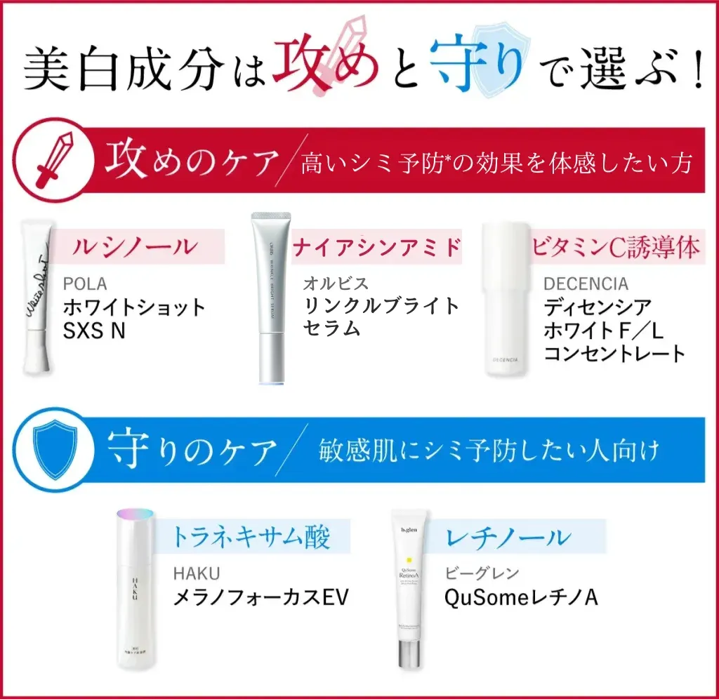 シミ対策成分は「攻め」・「守り」で選ぶ