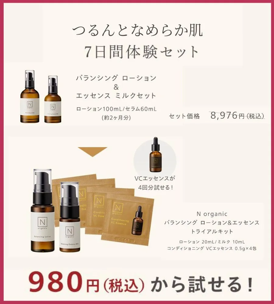 この980円のお得なトライアルセットは、「Nオーガニック誕生7周年を記念したキャンペーン」なので、いつまで実施しているか分かりません…!