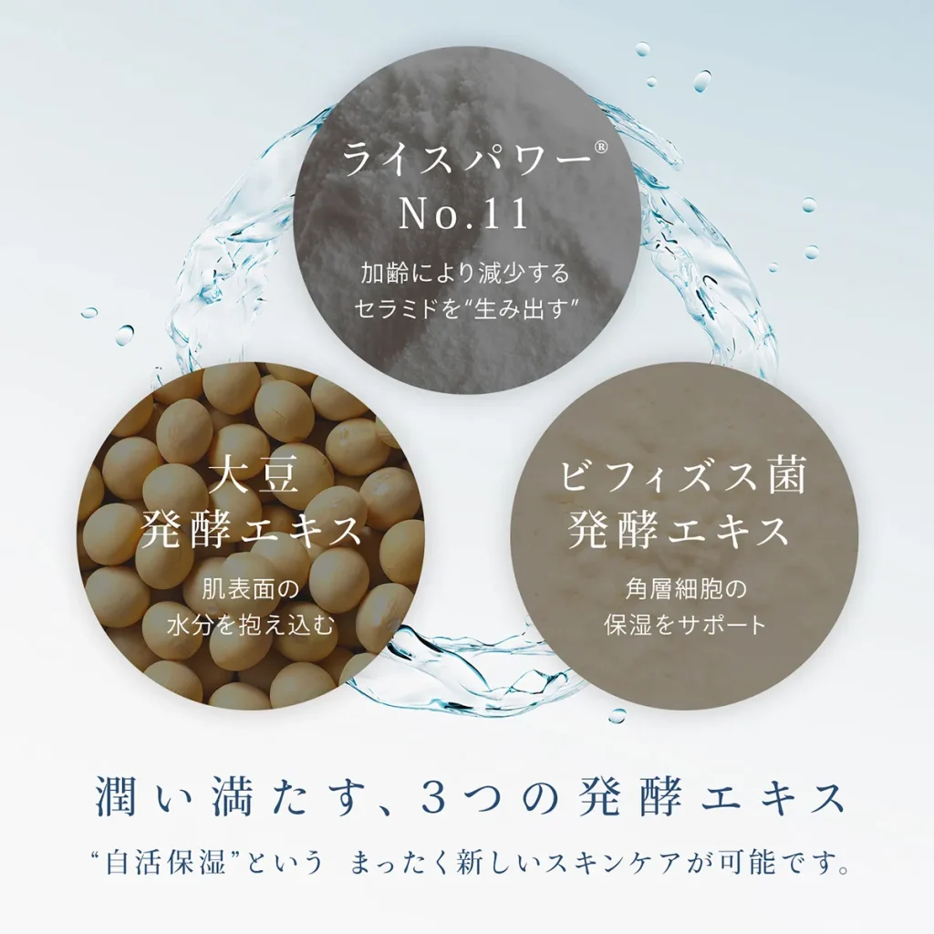 肌潤化粧水には、日本で唯一肌の水分保持能の改善が厚生労働省に認められた、有効成分ライスパワー®No.11*3を配合!