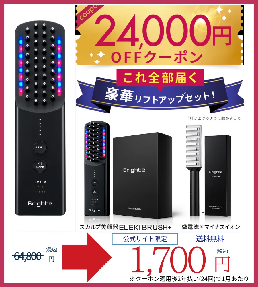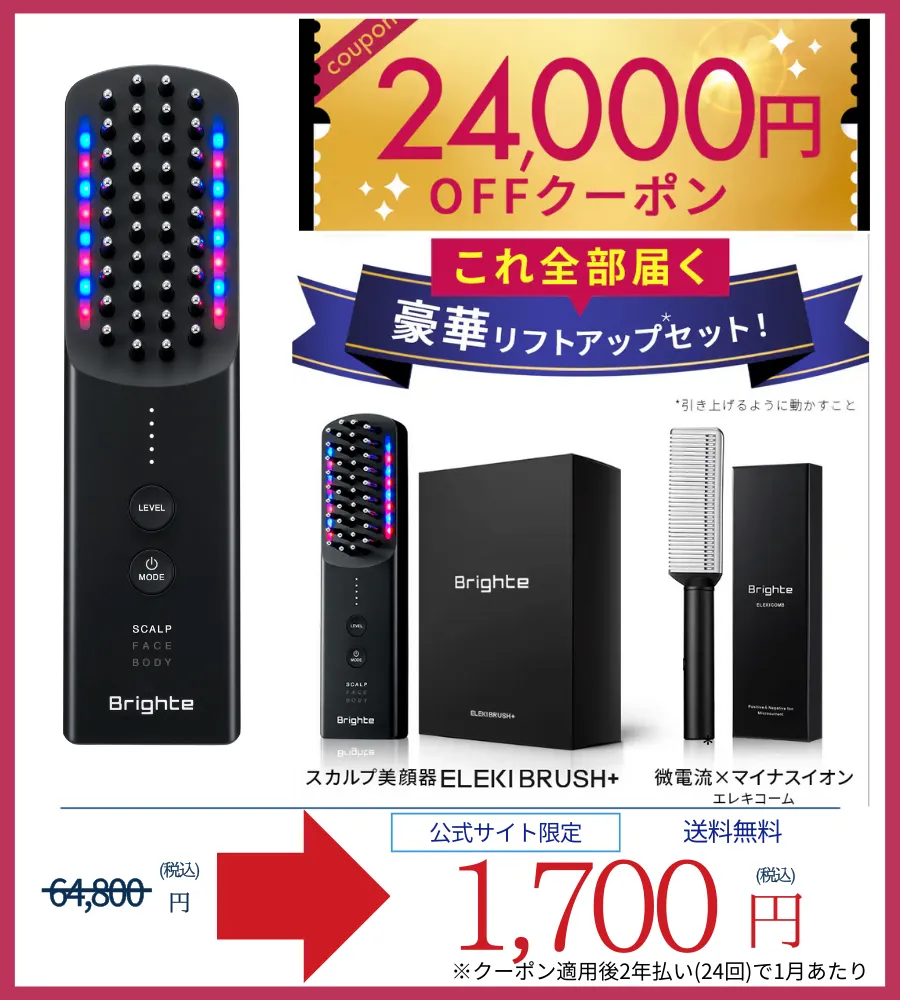 クーポン使用後2年払い(24回)だとなんと、月々1,700円(税込)*という価格で大人気の「エレキブラシ+」と「エレキコーム」を試せちゃうんです!