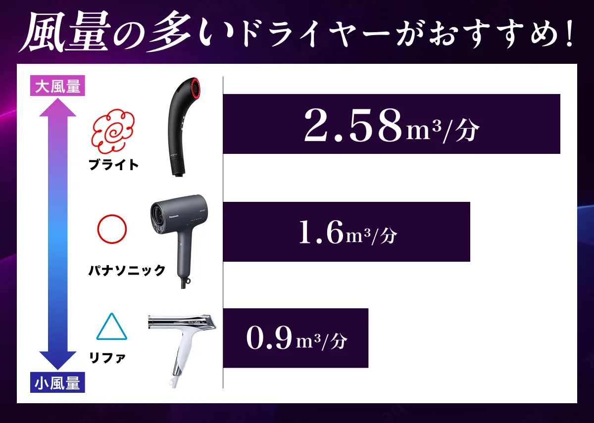 ①パッと乾く大風量のドライヤーを選ぶ!