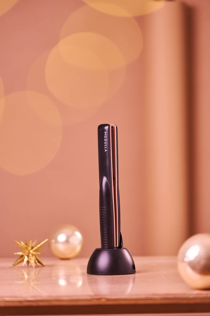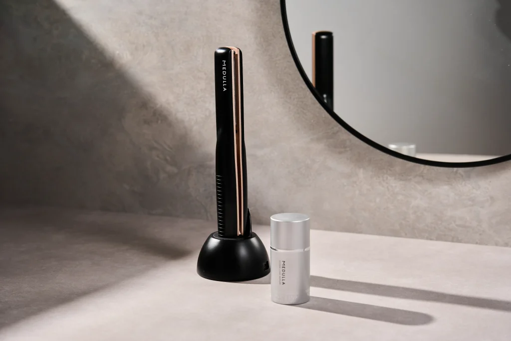 「ソニックシャインプロ」は、「MEDULLA」シリーズ最高峰の、パサつきやうねりを解消してサラつや髪を叶える超音波アイロンです。