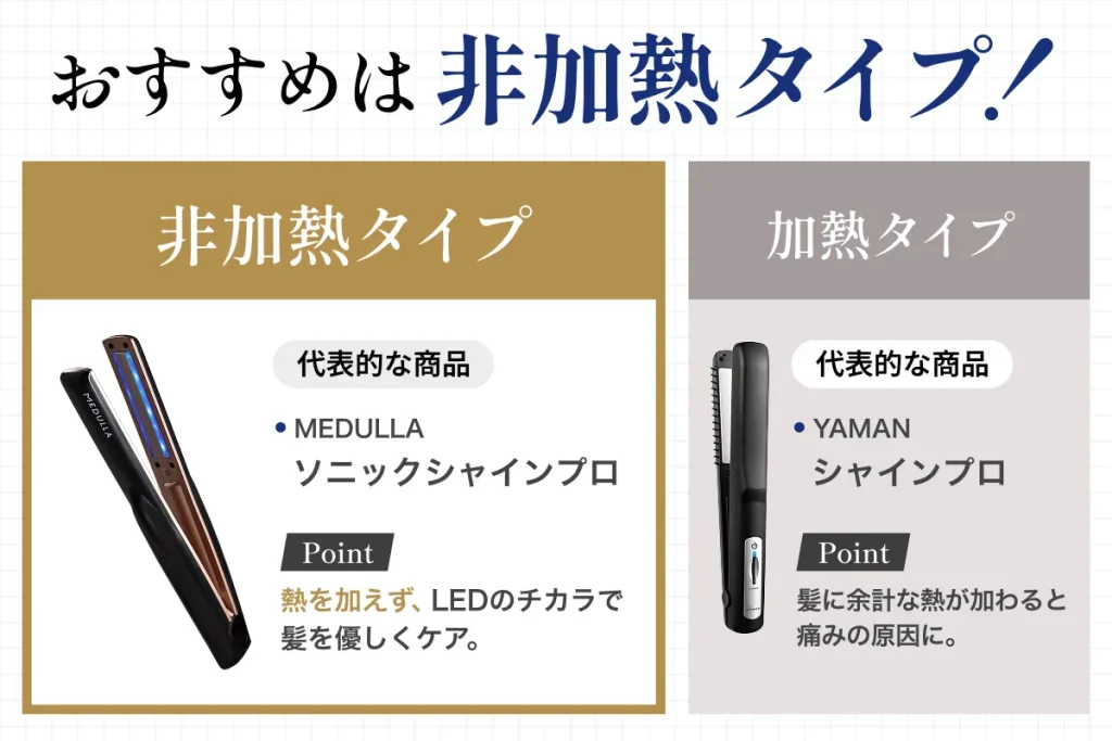 ②ダメージレス髪を目指すなら非加熱式がおすすめ!