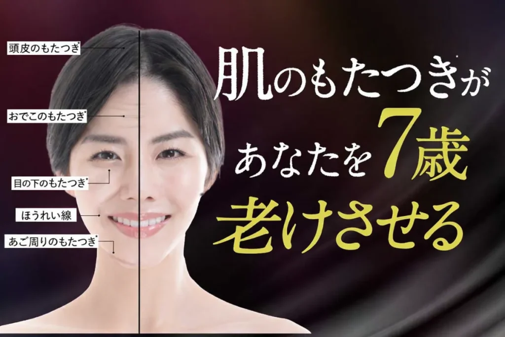 資生堂によると、肌がもたついて*いるだけで+7歳も見た目年齢が老けて見られるというデータが話題に。