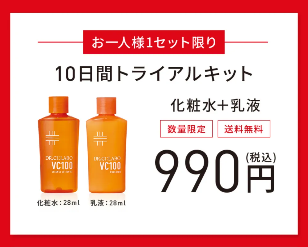 そんなドクターシーラボの人気アイテムであるVC100エッセンスローションには、100兆個の高浸透ビタミンCが配合!